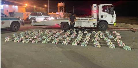 صرّح المتحدث الإعلامي لشرطة منطقة جازان، بأن القوة الخاصة لأمن الطرق بمركز الضبط الأمني بمحافظة الدرب تمكَّنت من القبض على مقيم من الجنسية الباكستانية، بحوزته (141) كيلو جرامًا من نبات القات المخدِّر مخبأة في تجاويف “سطحة” لنقل المركبات، وجرى إيقافه واتخذت بحقه الإجراءات النظامية الأولية، وإحالته إلى جهة الاختصاص.
