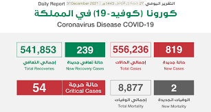 وبينت الإحصائية أن إجمالي عدد الإصابات في المملكة بلغ(556236) حالة وبلغ عدد حالات التعافي (541853) حالة .