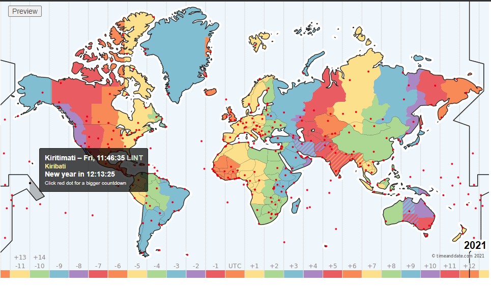 رغم أن العام الجديد يتبقى على موعده ساعات ، إلا أن عددًا آخر من دول العالم أصبحت في عام 2022، حيث جاءت جزيرة جزيرة “كيريتيماس” المرجانية وهي إحدى الجزر التابعة لجمهورية كيريباتي في وسط المحيط الهادئ، أول دوله استقبلت قدوم العام الجديد في تمام الساعة 1 بعد الظهرًا بتوقيت الرياض، حيث مر على بداية العام عندهم ساعات قليلة.