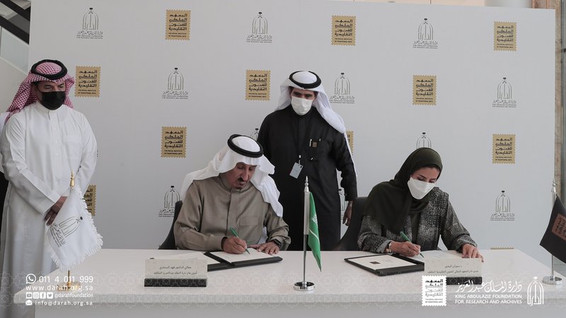 قّعت دارة الملك عبدالعزيز مع المعهد الملكي للفنون التقليدية على مذكرة تفاهم، في مقر المعهد بالرياض، تضمنت العديد من مجالات التفاهم التي تدخل في نطاق عمل الجهتين، بما يساهم في تعزيز أنشطة وخدمات الدارة والمعهد.