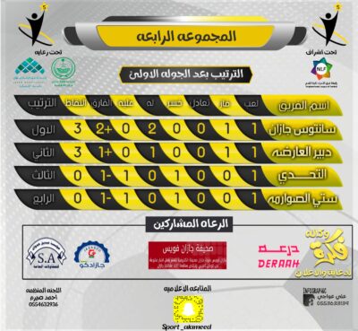 بعد ان انتهت المجموعة الثالثة والمجموعة الرابعة من خوض مباريات الجولة الاولى شاهد ترتيب الفرق