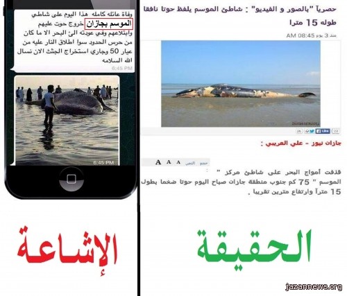 تتناقلت وسائل التواصل الإجتماعي صورا لحوت نافق على شاطئ مركز الموسم بمنطقة جازان على أنه تسبب في ابتلاع أسرة .