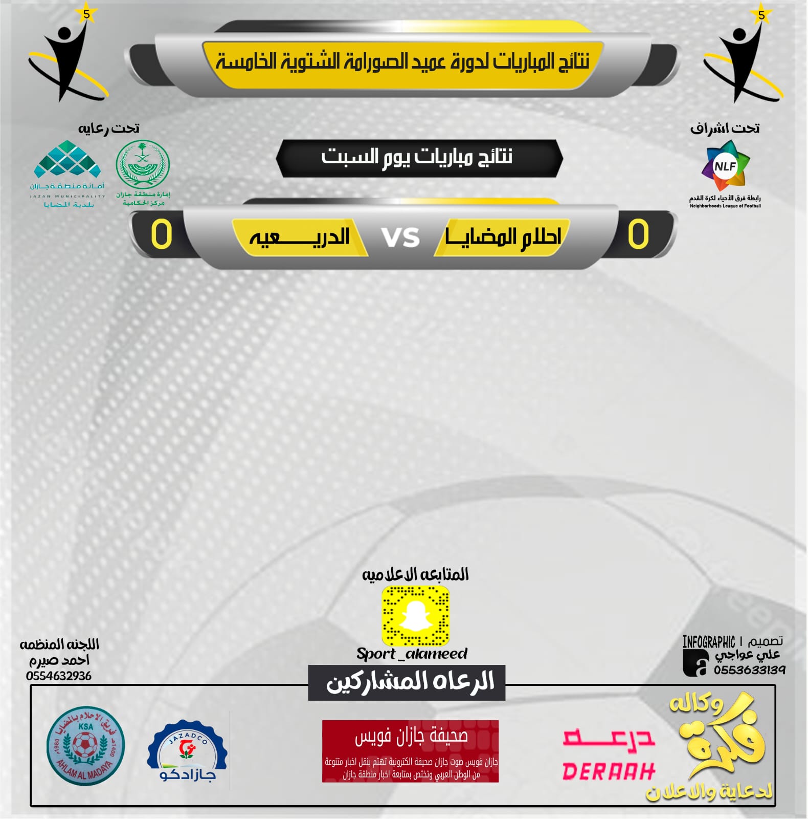 ضمن دورة عميد الصوارمة الشتوية الخامسة نتائج مباريات السبت 26/6/1443هـ