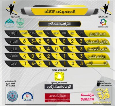 ضمن دورة عميد الصوارمة نتائج مباريات اليوم الخميس 2/7/1443هـ وترتيب المجموعة الثالثة