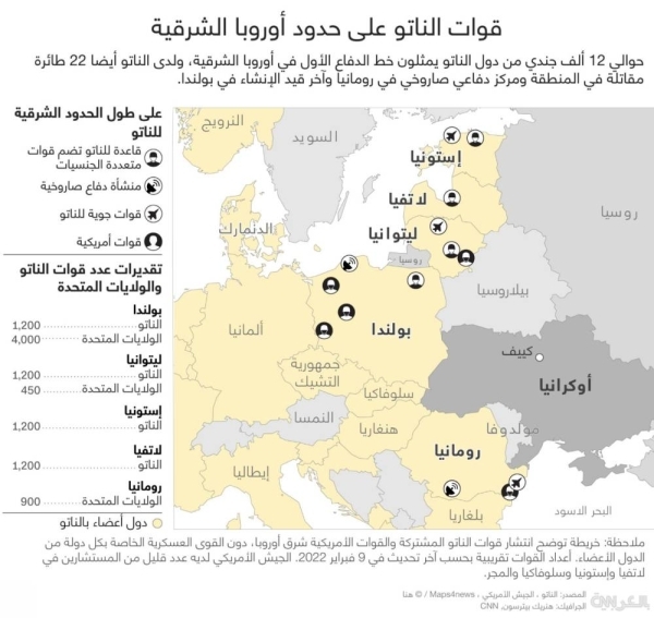آخر الأخبار > في ظل التهديد بغزو أوكرانيا.. ما عدد قوات الناتو قرب الحدود الروسية وأين ينتشرون؟