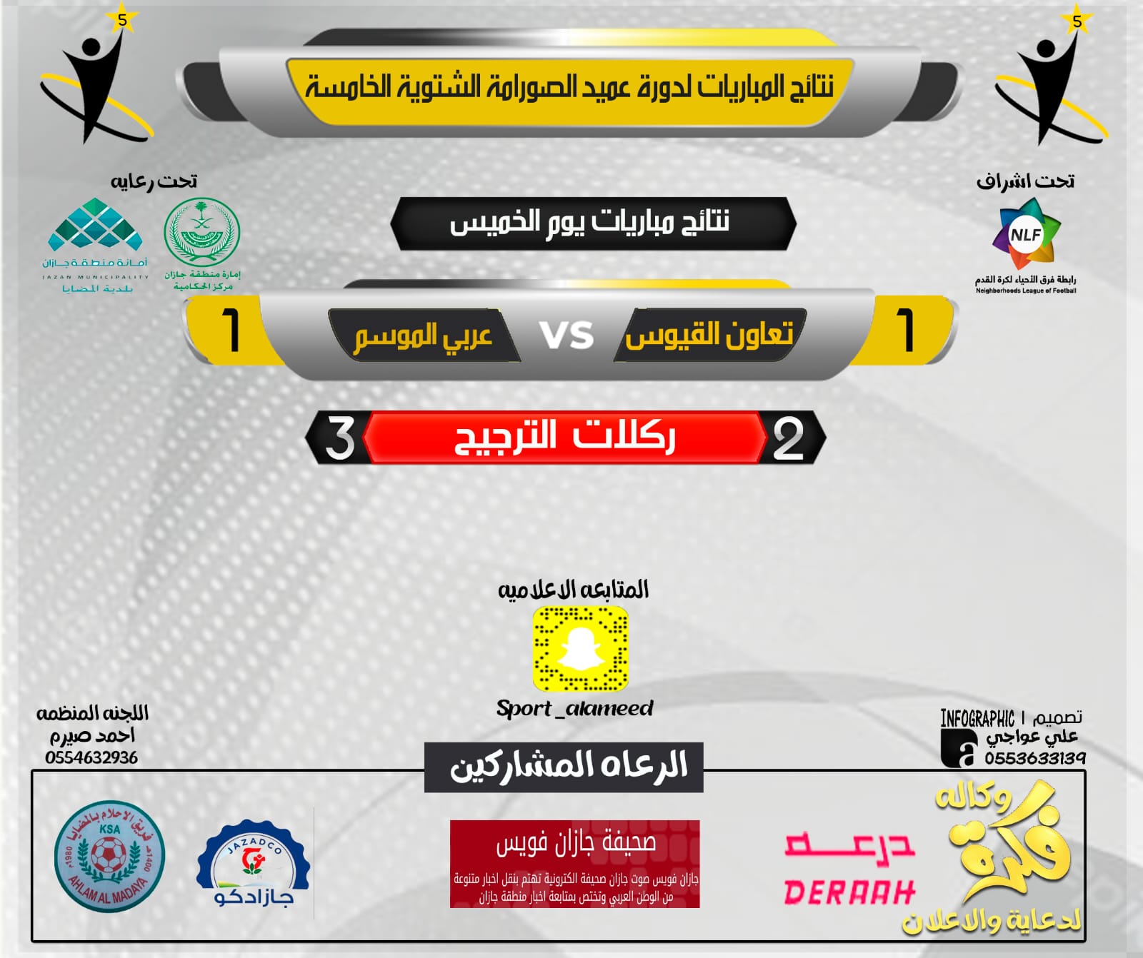أخبار المجتمع > ضمن دورة عميد الصوارمة الشتوية الخامسة دربي الموسم ناري فاز فيها عربي الموسم