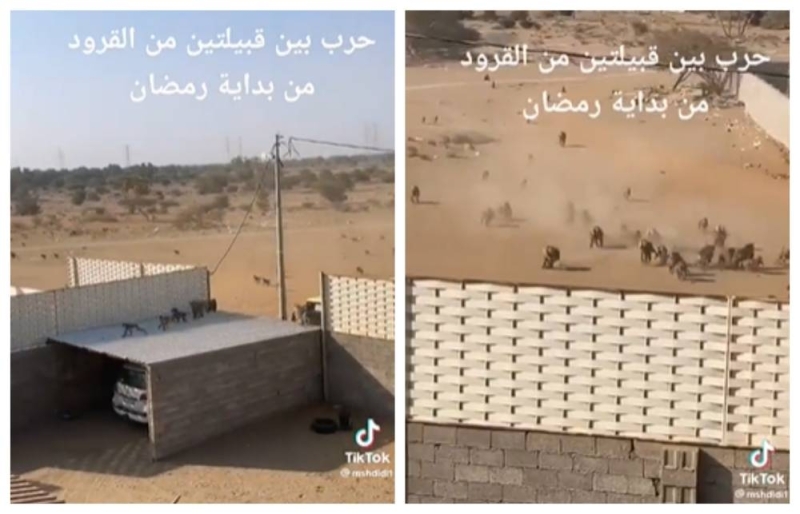ودارت مطارات مستمرة بين القطيعين وحاولت بعض القرود فرض سيطرتها على الأمور إلا أن المجموعة الأخرى لم تسمح بذلك.