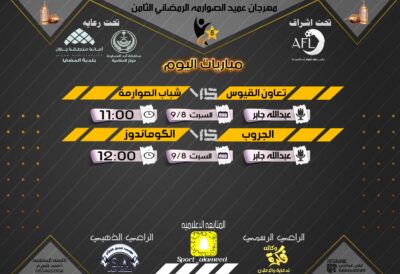 مهرجان عميد الصوارمه الرمضاني8 نتائج مباريات يوم السبت 9/8