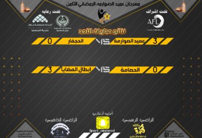 أخبار المجتمع > مهرجان عميد الصوارمه الرمضاني8 نتائج مباريات يوم الاحد 9/9