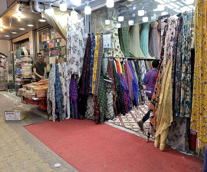 وداخل السوق تنتظم محال بيع الأقمشة النسائية التي تجد رواجاً كبيراً في المناسبات, ومحال بيع الأواني المنزلية والأجهزة الكهربائية وأدوات العطارة والمطرزات والشراشف والعطور ومستلزمات الأسرة والمدرسة فضلاً عن باعة النعناع والحبق وغيرها, وتفصلها ممرات متوسطة المساحة كغيرها من ممرات الأسواق الشعبية القديمة ما يجعل المتسوق على مقربة من البضائع المعروضة على جانبي الممر ليقف بكل سهولة للسؤال والشراء عما يلفت انتباهه من بضائع معروضة.