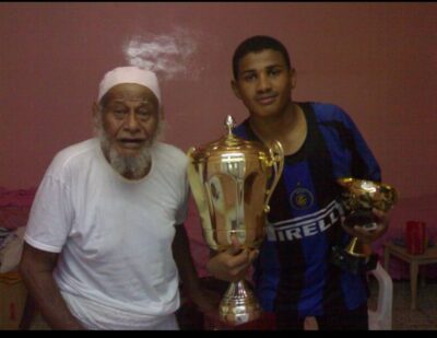 مع الوالد رحمه الله بعد تحقيق بطولة الشاطئ في جازان واحسن لاعب في البطولة عام ١٤٢٨هـ