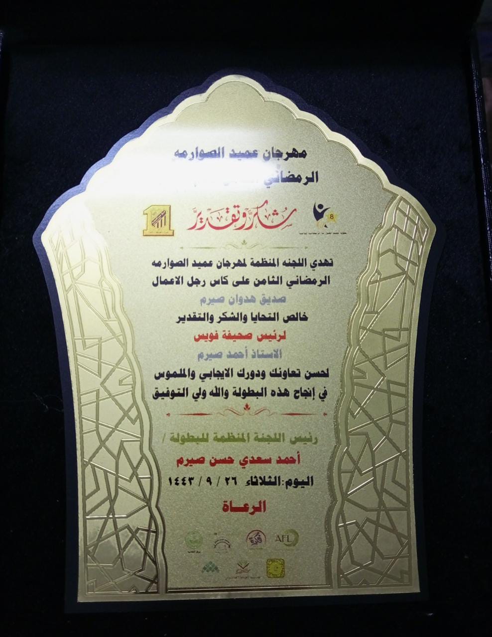 تعاون القيوس بطل كأس الشيخ علي هدوان صيرم ضمن مهرجان عميد الصوارمة الرمضاني الثامن