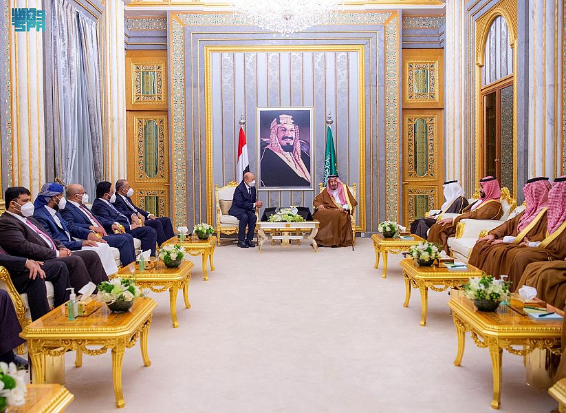 وقد بادلهم خادم الحرمين الشريفين خلال اللقاء، التهنئة بالشهر الفضيل، مؤكدًا – حفظه الله – حرص المملكة ودعمها لمجلس القيادة الرئاسي اليمني، متمنيًا لهم التوفيق؛ بما يحقق لليمن وللشعب اليمني الشقيق الأمن والاستقرار.