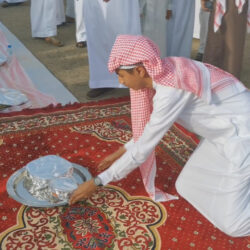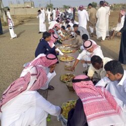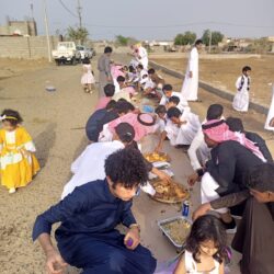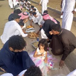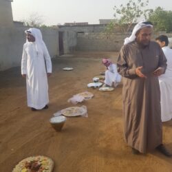 - منذ القديم اعتاد أبناء منطقة جازان خاصة ومنطقة الجنوب بتميز أعيادهم بعادات توارث أبنائها جيل بعد جيل وهي حلقة يجتمع فيها أبناء الحي أو الحارة أو القرية كلا يأتي بطعامه معه لتكون سفرة يجتمع عليها الأهل والجيران في صورة إجتماعية تدل على اللحمة والتقارب يتبادلون خلالها التحية والمعايدة فيما بينهم