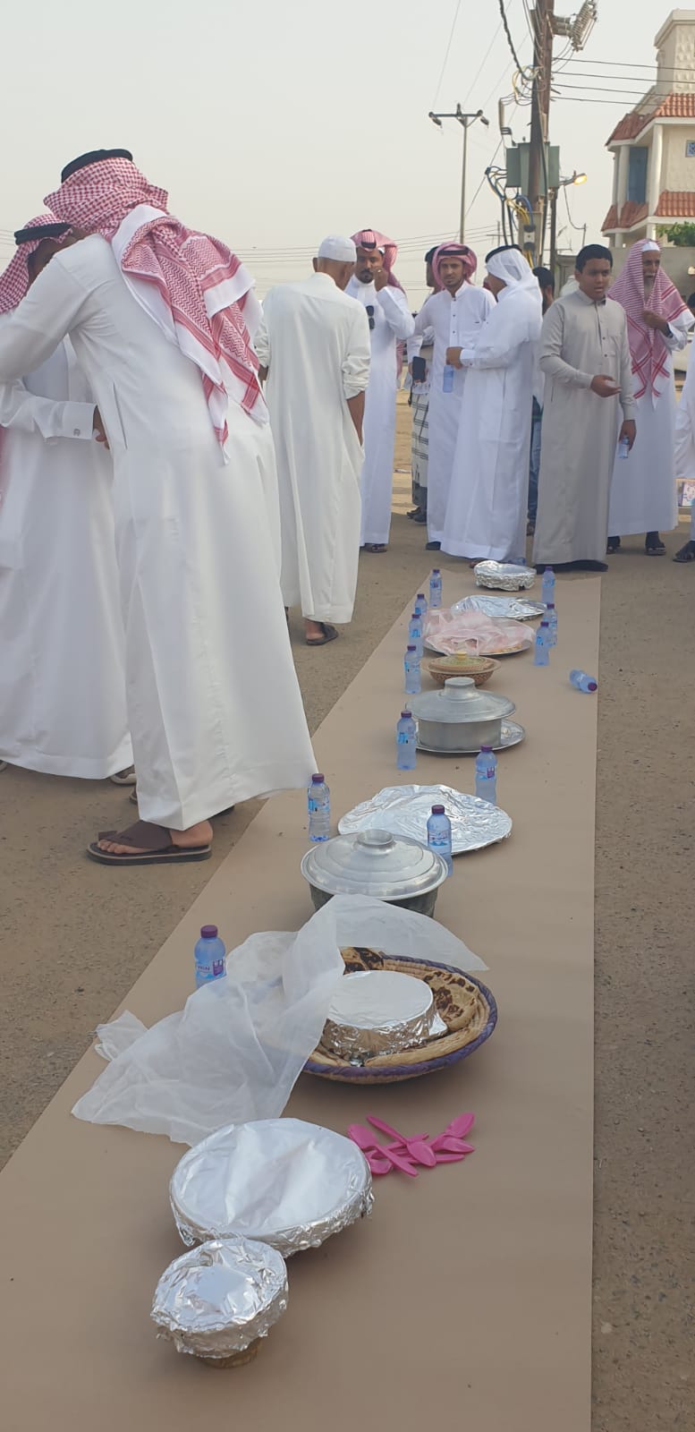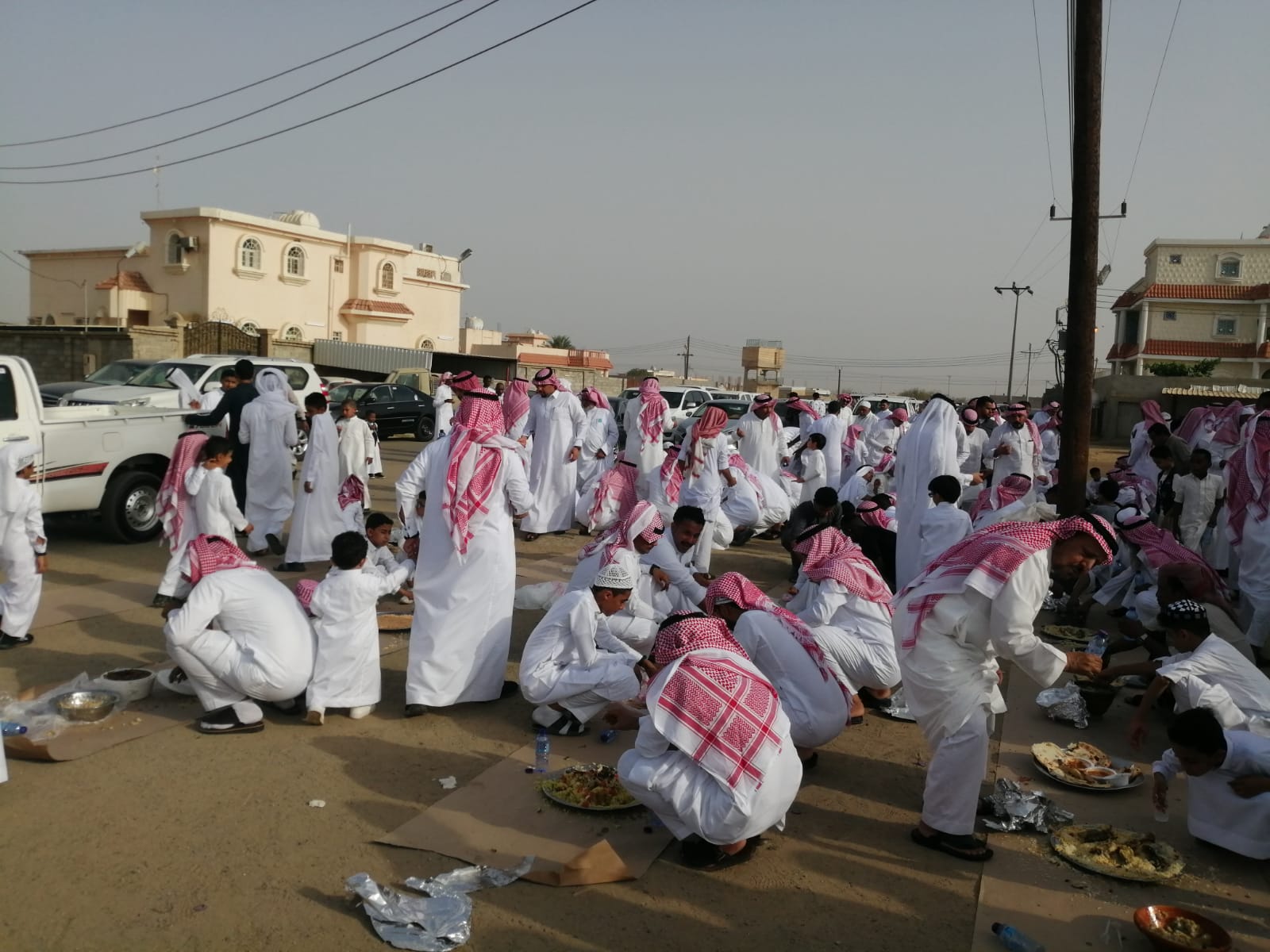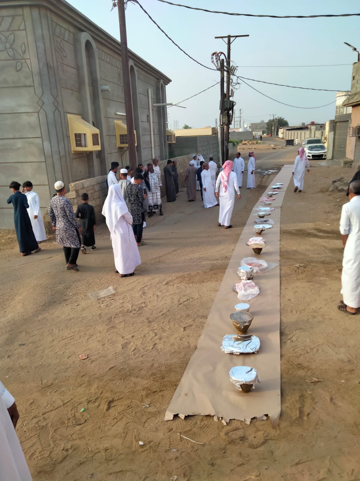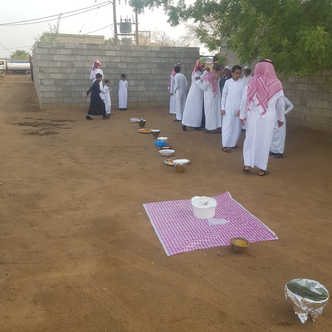 - منذ القديم اعتاد أبناء منطقة جازان خاصة ومنطقة الجنوب بتميز أعيادهم بعادات توارث أبنائها جيل بعد جيل وهي حلقة يجتمع فيها أبناء الحي أو الحارة أو القرية كلا يأتي بطعامه معه لتكون سفرة يجتمع عليها الأهل والجيران في صورة إجتماعية تدل على اللحمة والتقارب يتبادلون خلالها التحية والمعايدة فيما بينهم