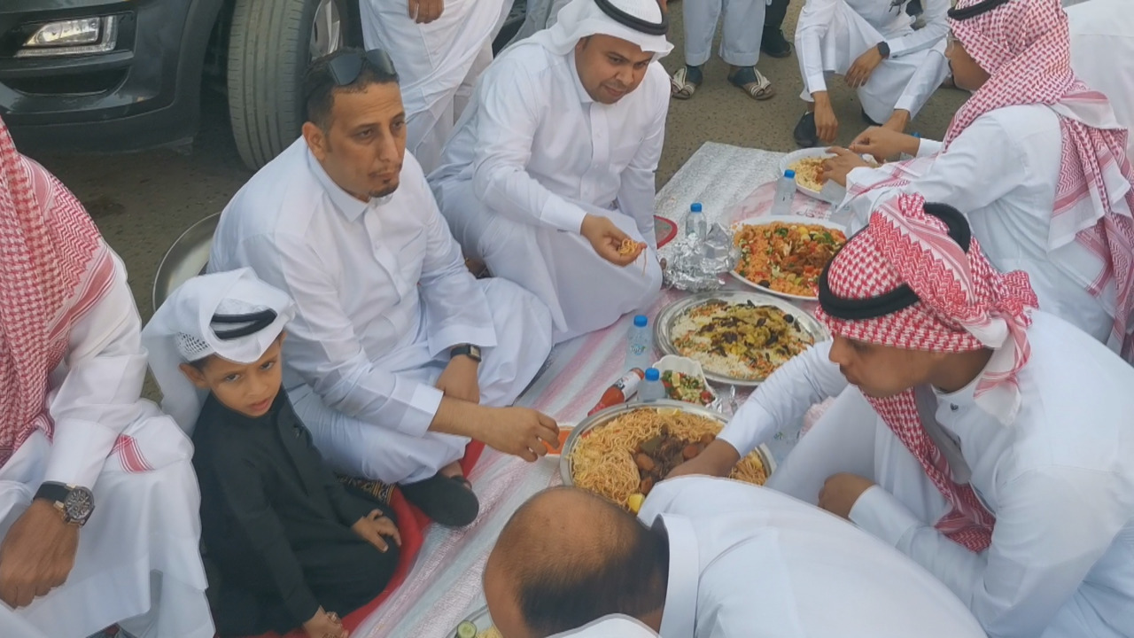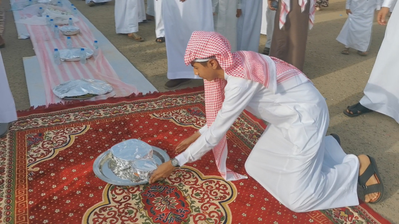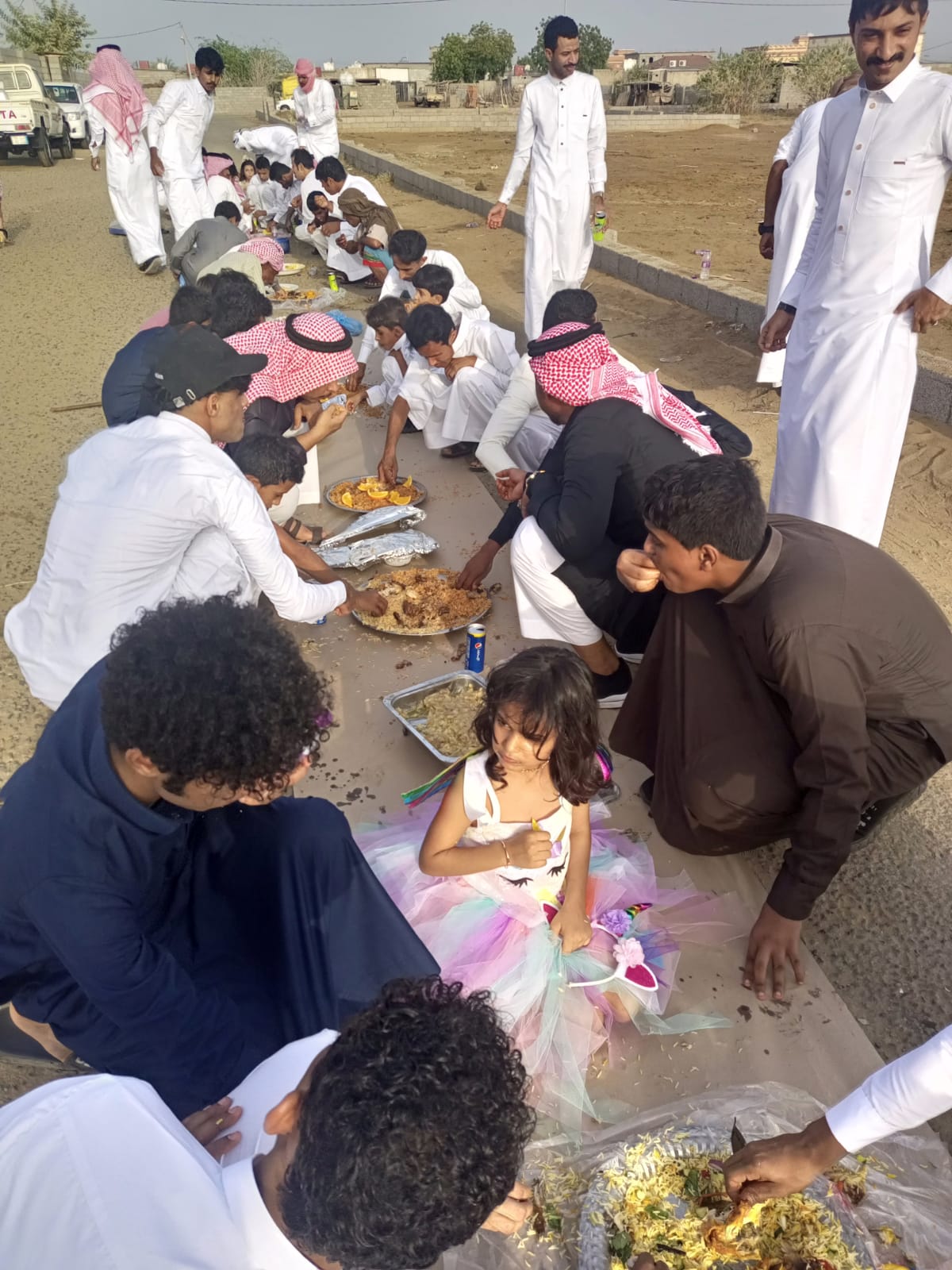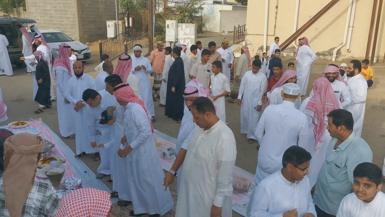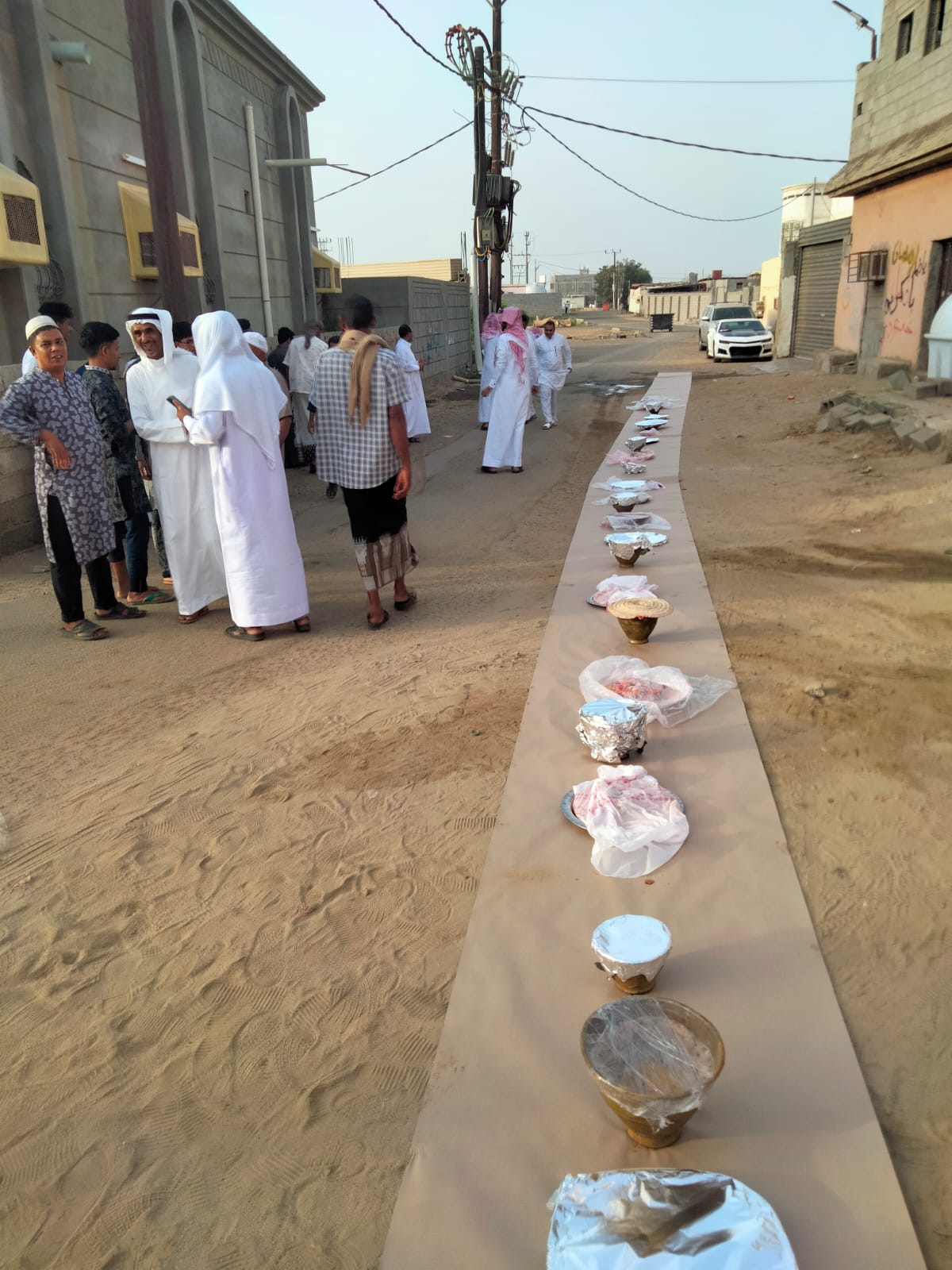 - منذ القديم اعتاد أبناء منطقة جازان خاصة ومنطقة الجنوب بتميز أعيادهم بعادات توارث أبنائها جيل بعد جيل وهي حلقة يجتمع فيها أبناء الحي أو الحارة أو القرية كلا يأتي بطعامه معه لتكون سفرة يجتمع عليها الأهل والجيران في صورة إجتماعية تدل على اللحمة والتقارب يتبادلون خلالها التحية والمعايدة فيما بينهم