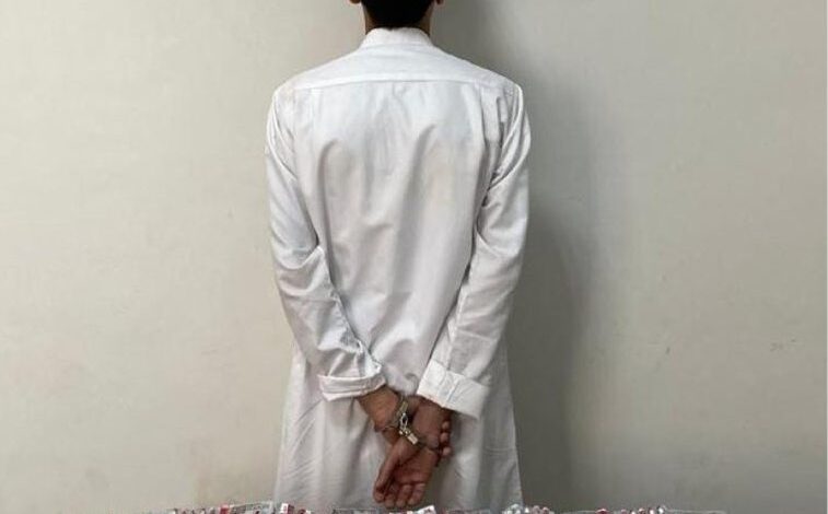 قبضت شرطة منطقة جازان ممثلة في مركز الضبط الأمني بالمشاف في محافظة العيدابي على مواطن بحوزته ( 6675) قرصًا خاضعًا لتنظيم التداول الطبي مخبأة في مركبته، وجرى إيقافه واتخاذ الإجراءات النظامية بحقه، وإحالته إلى جهة الاختصاص.