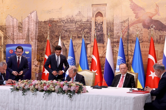 الاتفاق تمّ بحضور الرئيس التركي رجب طيب أردوغان والأمين العام للأمم المتحدة أنطونيو غوتيريش