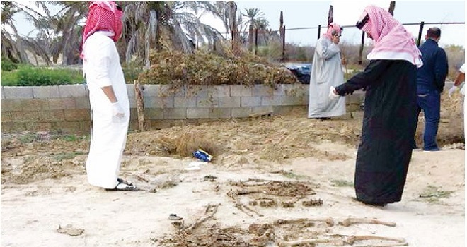 وبدأ العثور على الجثث، بعدما تلقت شرطة مدينة صفوى بلاغًا من أحد المواطنين، عن العثور على هيكل عظمي لجثة متحللة في مزرعة استأجرها، بغرض استصلاحها زراعياً، وحين باشرت الموقع، عثرت على جثة أخرى، ليتضح أنهما كانتا مكبلتين بحبال، وغير مكتملتي العظام، ولا تبعدان عن سطح الأرض سوى متر واحد.