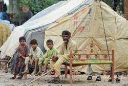 وفي بلدة سكور القديمة في مقاطعة السند الجنوبية، تصطف الخيام البالية في الشوارع، حيث يبحث الناس عن مأوى.. يجلس كثيرٌ منهم على أسرّة فقط، فقدوا كل ممتلكاتهم في الماء.