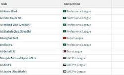 وشهدت قائمة أغلى 10 آسيوية من ناحية القيمة السوقية، تواجد فريق سعودي آخر، هو الاتفاق “31.23 مليون يورو” الذي تواجد سادسا، فيما احتل شنغهاي بورت المركز الخامس “33.73 مليون يورو”، وسابعا الدحيل القطري “30.85 مليون يورو” ثم ثلاثة أندية إماراتية، بداية من الشارقة “29.44 مليون يورو” والعين في المرتبة التاسعة “27.79 مليون يورو”، ثم الجزيرة عاشرا “27.02 مليون يورو”.