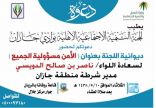 يدشن سعادة مدير شرطة منطقة جازان اللواء ناصر بن صالح الدويسي مساء اليوم الثلاثاء ديوانية الريان باللجنة الاجتماعية اﻷهلية بوادي جازان وذلك تحت عنوان “الأمن .. مسؤولية الجميع”.